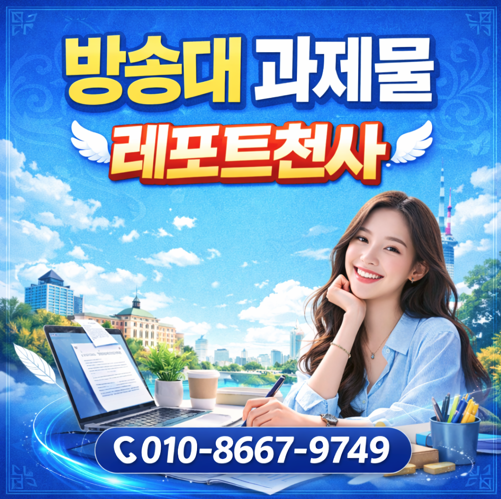 방송대 과제물 작성방법을 몰라서 막막하거나, 시간이 부족해서 힘드신 분들께 레포트천사를 진심으로 추천드려요. 저는 레포트천사 덕분에 직장과 학업을 병행하면서도 좋은 학점을 유지할 수 있었고, 이제 졸업을 앞두고 있어요. 혼자였다면 중간에 포기했을 수도 있었을 텐데, 든든한 도움 덕분에 무사히 여기까지 올 수 있었답니다. 2010년부터 17년째 운영 중인 검증된 사업자등록업체, 10만 건 이상의 작업 노하우, 1,000개 이상의 이용 후기, 그리고 1대1 맞춤 작업과 철저한 시간 약속. 이 모든 게 갖춰진 곳이 레포트천사예요. 방통대 전문이라 학과별 특성까지 반영한 고득점 과제물을 받을 수 있으니, 부담 느끼지 말고 편하게 상담 먼저 받아보시길 바랄게요.